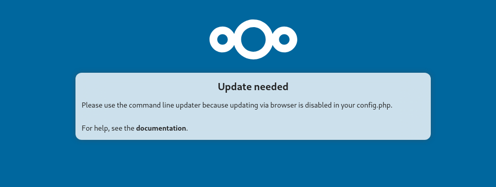 occ, however I wonder whether this is the correct way to proceed even if I am running the debian-packaged version of the server.Error message displayed by web interface: "Update needed"to Message displayed by web interface: "Update needed"Depend of case: